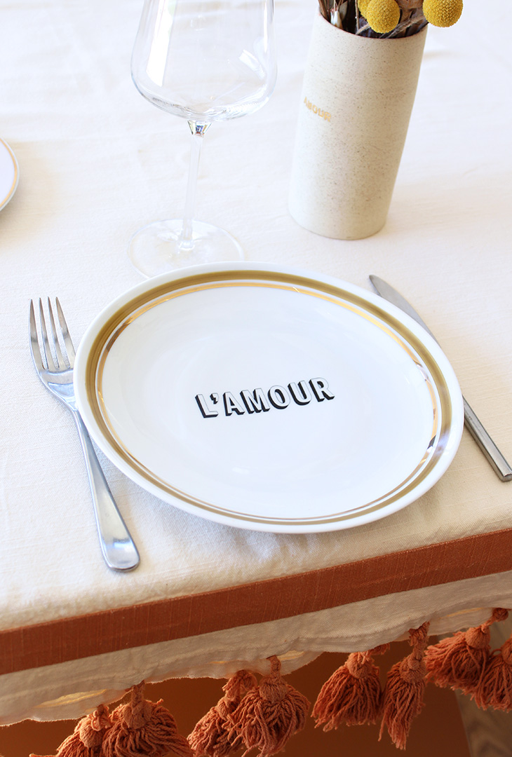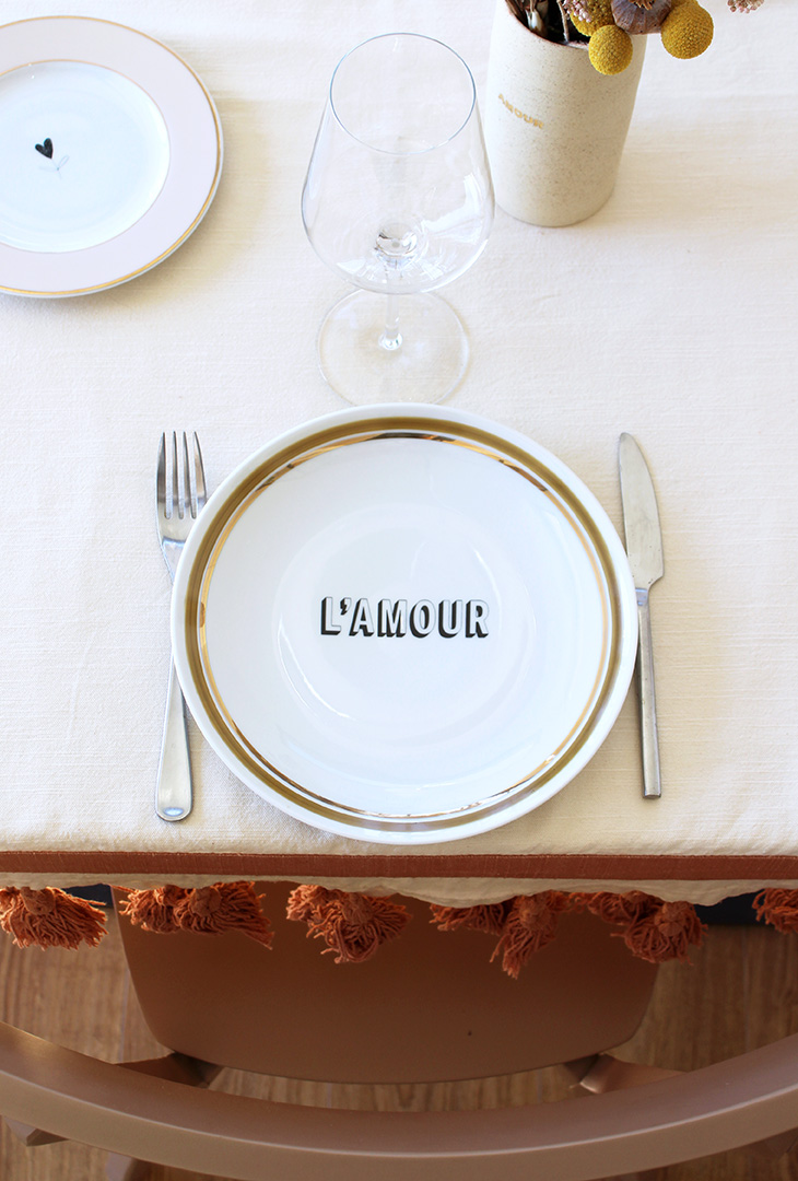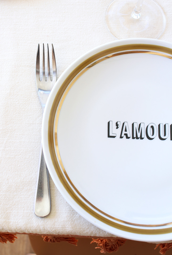 On aime le style rétro donné par le contour coloré et doré de l’assiette
