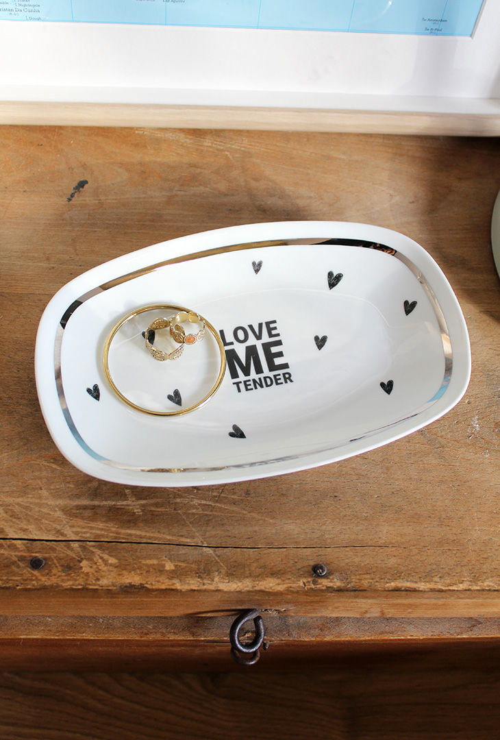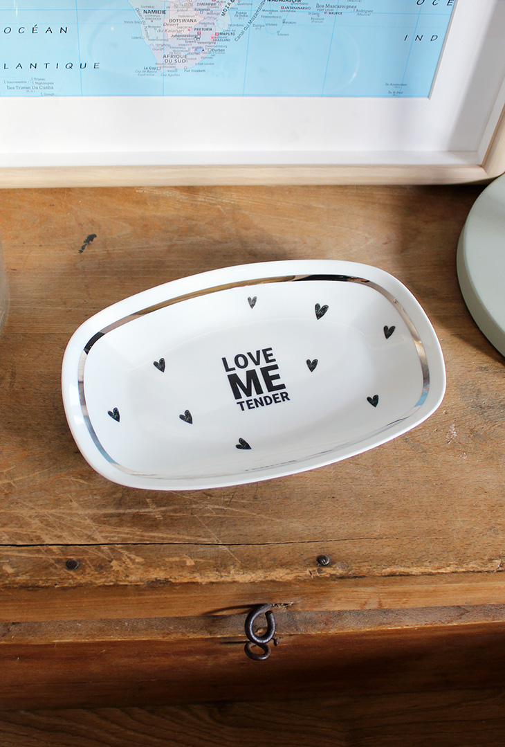 On l’imagine facilement en vide poche, en coupelle à bijoux, en coupelle à biscuits pour le café…