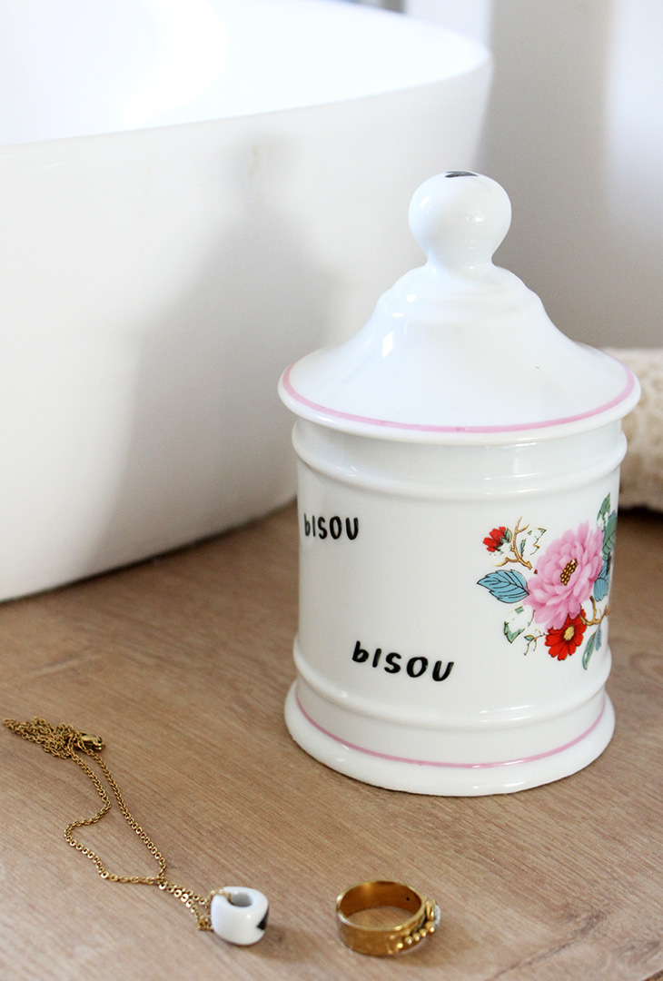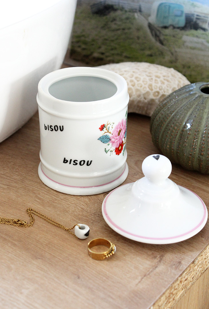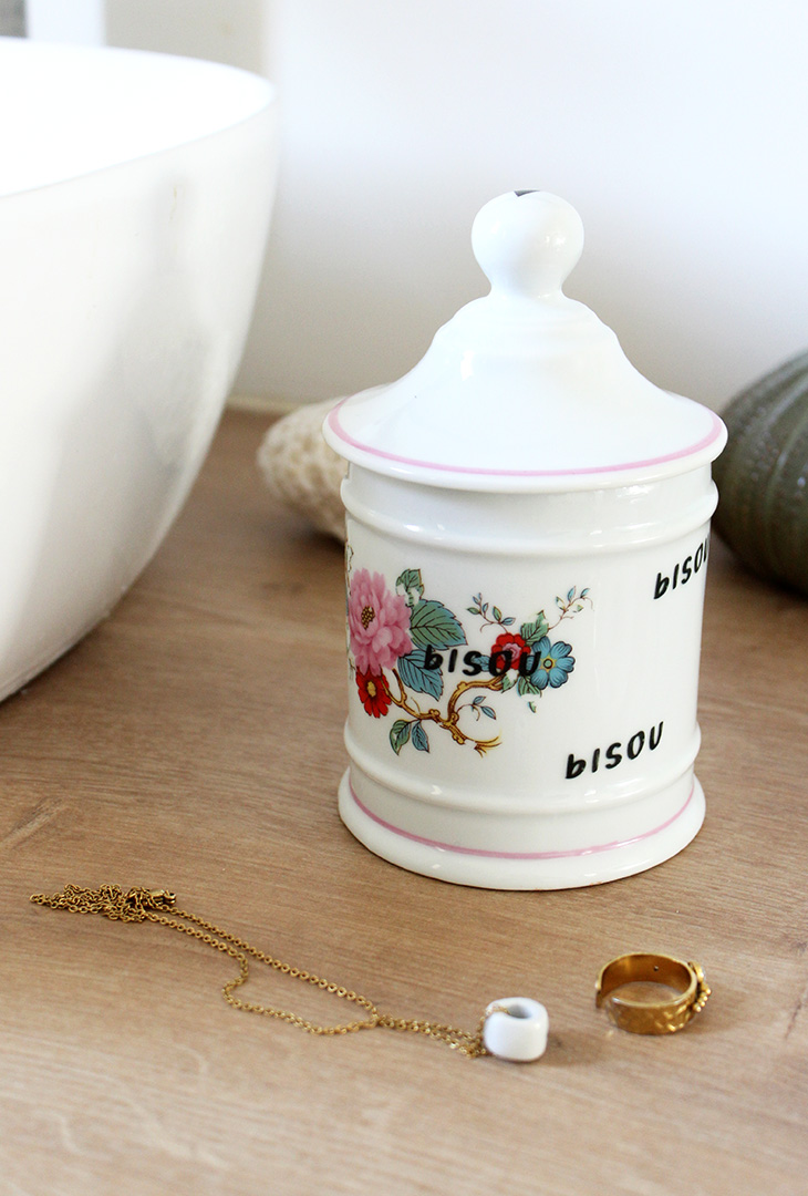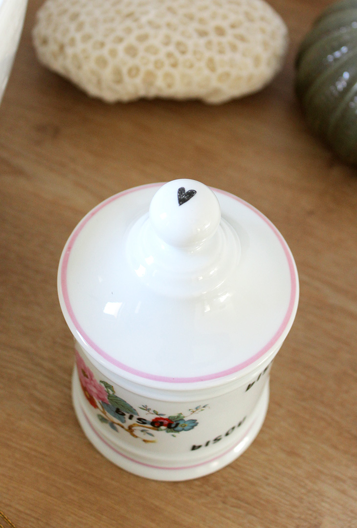 On peut l’utiliser comme pot dans sa salle de bain (coton, coton tige), ou en pot à bonbons dans la cuisine, à vous d’imaginer!