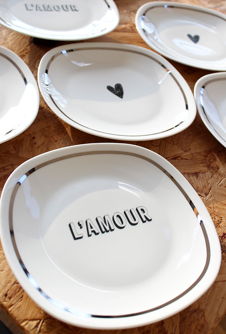 Se compose de 3 assiettes L’amour et de 3 assiettes cœur.